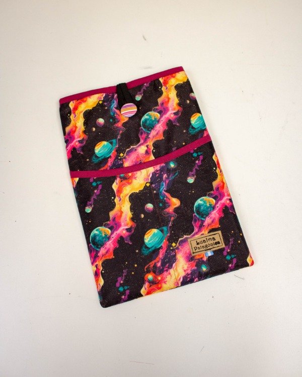 Está pensada para que lleves tu libro (o tablet) a todos lados y no se te arruine y en los bolsillos podés guardar posit, resaltadores, marcadores de páginas o lo que vos elijas.
