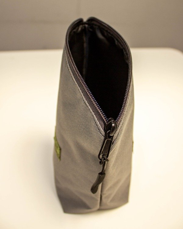 Está hecho de tela cordura y en su interior está forrado con tela silver.