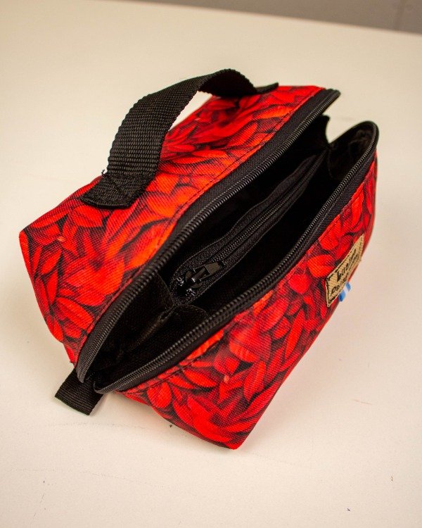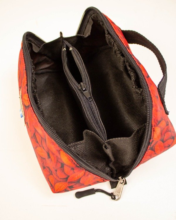Está hecho con tela cordura súper resistente y forrado en su interior. Además cuenta con un bolsillo interno con cierre y bolsillos en sus laterales.